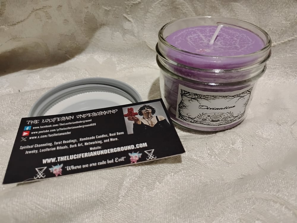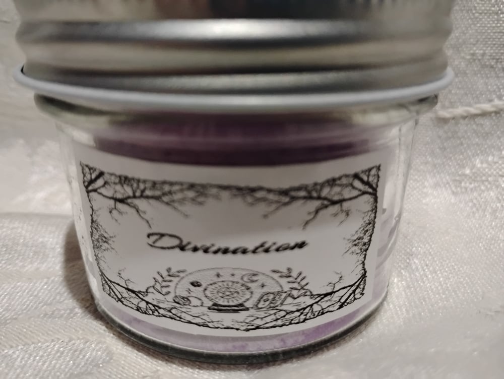 DIVINATION JAR CANDLE 1 Small 4oz jar hand poured by me Soy Paraffin Wax mix Made with Papa Legba specific oil Purple Color Burn to to gain insights or answers to questions